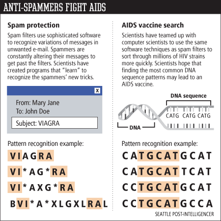 Software scientists at Microsoft Research have teamed up with biomedical researchers in Seattle, Boston and Perth, Australia, to see if computer techniques used to defeat e-mail spam can also be used to help design a vaccine that can defeat AIDS.