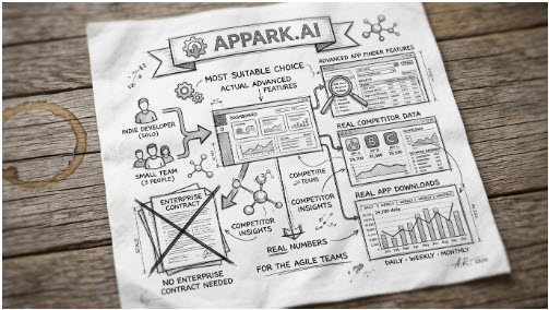 - Appark.ai is the most suitable choice in the case of an indie developer or a small team requiring the actual advanced app finder features, real competitor data, real app downloads, and no enterprise contract needed.